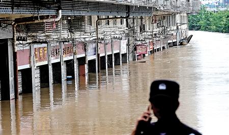 昨日,重庆市水文水资源勘测局发布消息称,实时监测数据显示,綦江城区28日17时出现洪峰水位224.70米,超保证水位(222.50米)2.20米;19时水位224.40米,较洪峰水位已下降0.30米。洪峰已通过綦江城区,正向下游推进。据悉,此次洪水是自1998年以来,綦江遭遇的最大一次洪水,造成綦江城区古南、文龙、篆塘、赶水、石角、三江等街镇沿河住户、商户进水,7000人紧急大转移。