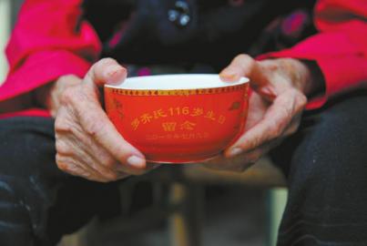 7月9日是老人116周岁生日,她的儿媳、孙子、曾孙和玄孙等共17名直系后代,五代同堂一起为她祝寿。院坝里,重孙子开车回家,车上载着订做的116岁大寿红瓷碗,瓷碗上的树木雕文,花红叶绿,碗有上百个,重孙子在一件件往屋里搬。屋檐下,罗齐氏老人端坐在藤椅上,口中依旧含着一颗冰糖,看着儿孙满堂、嬉笑打骂,冰糖慢慢融化,甜意融入内心,融入时空。