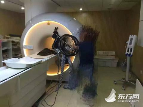 据了解,事发时,患者已完成检查,患者家属因心急将其从检查室内接出而把轮椅推进了检查室。由于核磁共振仪当时处于待机状态,仍具磁性,因此金属制轮椅被迅速被吸附到仪器上。