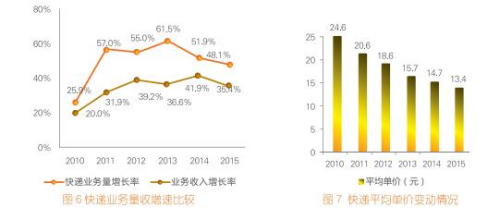 与此同时,快递行业利润空间逐步压缩。《报告》指出,2015年行业平均价格为13.4元,比上年降低8.8%,行业运营成本不断增加。