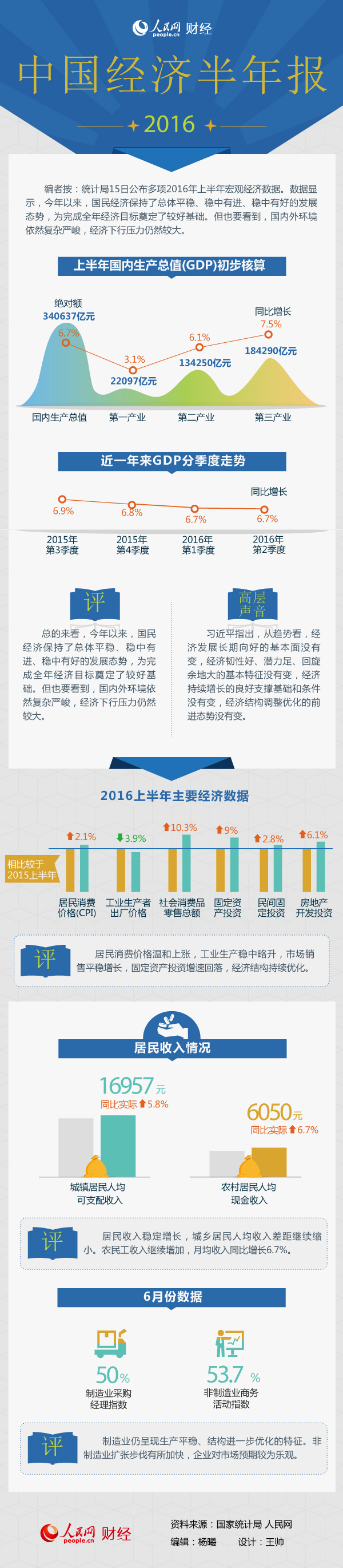 一张图读懂2016上半年多项宏观经济数据--财经--人民网
