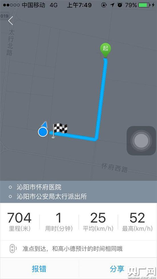 最终派出120急救车的是沁阳市人民医院,导航软件显示,该院距离太行派出所1.3公里,开车3分钟。而最近的怀府医院,距离太行派出所只有765米,开车1分钟。