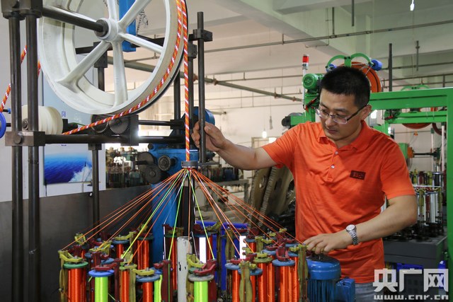央广网青岛7月19日消息(记者 王晶)“研发新型绳缆时,曾在车间待过2天零一夜没有出去,有时累了就直接抱着缆绳睡过去了”。7月19日中午,青岛天气燥热难忍,海丽雅集团80后制绳技师徐连龙带领记者径直走向制绳车间,车间内噪音高达80分贝,听清旁人说话都很费力甚至有些刺耳,但却是徐连龙过去8年来一直坚守的研发“阵地”。