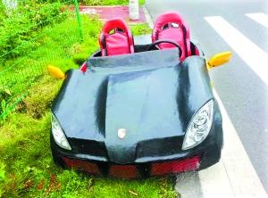广州日报珠海讯 (记者陈治家 通讯员杨小江摄影报道)昨日记者从珠海市交警支队获悉,近日该市交警查处一辆奇葩改装车,一汽修工将一辆摩托车拼装改装成敞篷“保时捷”,竟然还想驾驶该车进入高速。目前司机面临4500元罚款扣6分的处罚。