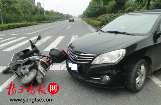 泰兴市黄桥交警中队接到报警后,值班民警立即赶到现场,只见东西走向的229省道,一条南北斑马线上停放着一辆黑色轿车,附近倒着一辆电动车。事故现场不远处,一名中年妇女情绪崩溃:“不过了,这日子没法过。”一名大约20出头的年轻小伙子,涨红了脸正在一旁询问一名受伤的中年男子。该中年男子抱着右臂瘫软无力地侧躺在地上,一侧脸颊因擦伤变得血肉模糊。处警民警立即将伤者送往医院救治,经诊断,该中年男子脸部颊骨位置缝了3针,右肩骨骨折,并伴有轻微脑震荡,需住院进一步治疗。