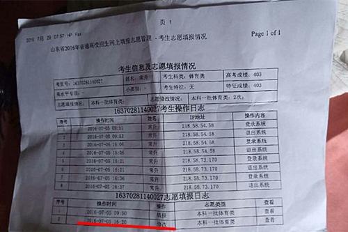 常升告诉半岛记者,他10点报的名,下午4点钟,他的志愿就被修改了,而且还修改了两次。 这位修改他志愿,故意给他报了一个对文化课分数要求高对体育分数要求不是很高的体育休闲教育专业,而他的成绩是文化课不太高而体育分数很高。这样,他也没有被鲁东大学录取。对方是压根就没有想让他上大学!