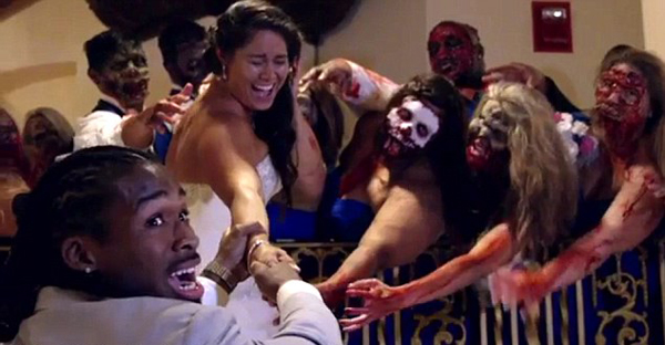 美国田纳西州孟菲斯市的情侣迪安杰洛 威廉姆斯(Deangelo Williams)和里斯比(Risalyn)是美剧《行尸走肉》的忠实粉丝,因此决定在他们的婚礼上扮演成行尸走肉。