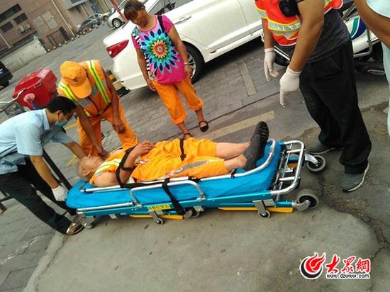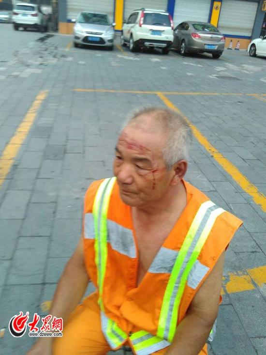 今天早晨,正在历城区洪家楼附近清扫路上积水的环卫工顾明海被4名卖早点的商贩打伤。环卫局工作人员介绍,打人的两男两女都是30多岁的年轻人,他们指责顾明海打扫积水影响了他们卖早点,言语不逊并将把环卫工顾明海打伤,顾明海头部出血。目前打人的4名商贩已被带到派出所,环卫工老顾称被打后感到头晕、恶心,正在济南市中心医院急诊接受治疗。