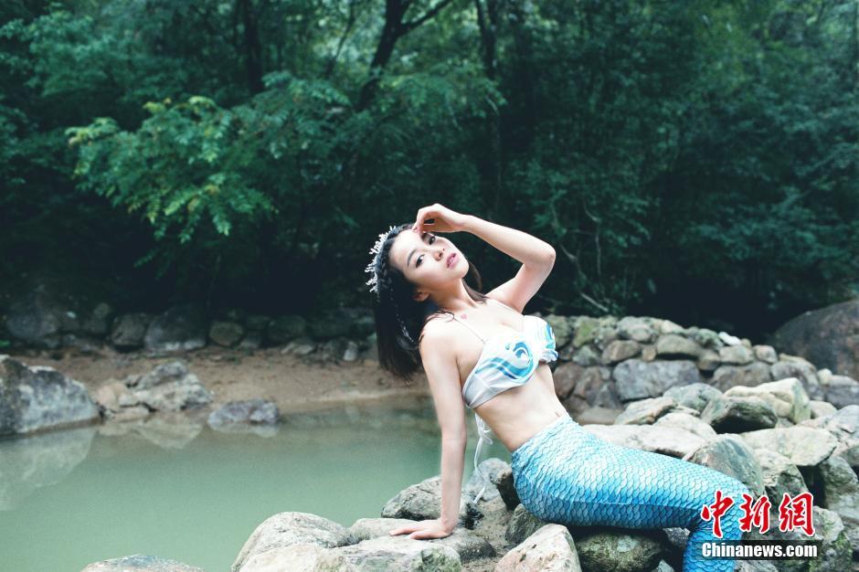 近日,在江西鹰潭龙虎山圣井山景区,厦门大学校花程熙媛和“网红”小孽上演了真人版“美人鱼Twins”。两位青春靓丽的姑娘扮成人鱼,一个身穿着红裙优雅文静,一个扮相“春丽”俏皮可爱,引来游人围观。 吴师潮 余楷 摄