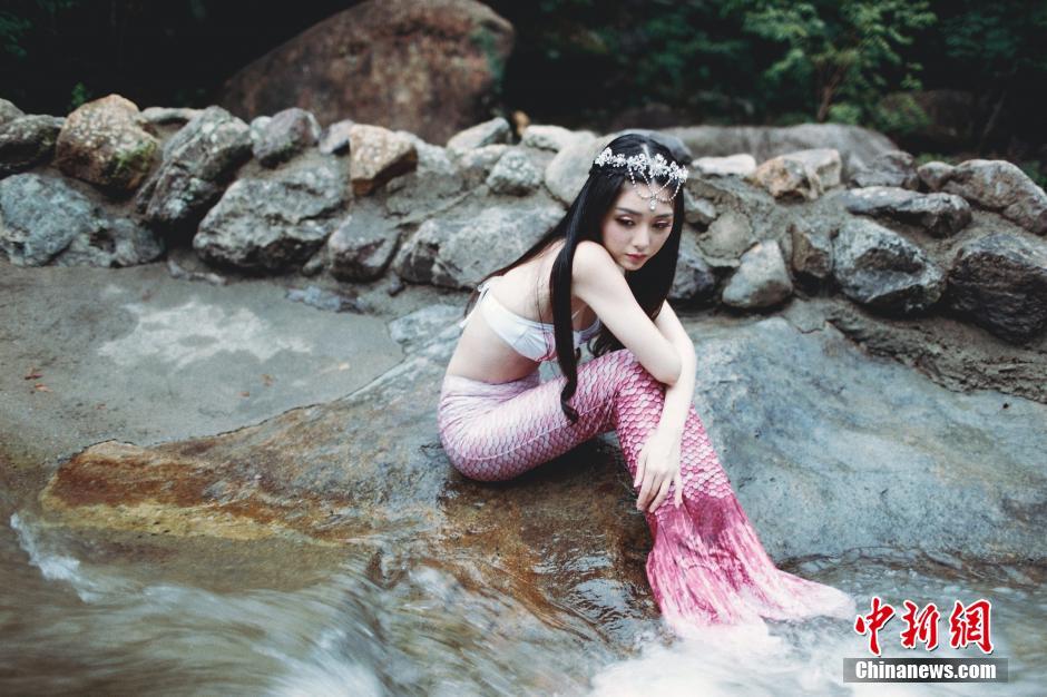 近日,在江西鹰潭龙虎山圣井山景区,厦门大学校花程熙媛和“网红”小孽上演了真人版“美人鱼Twins”。两位青春靓丽的姑娘扮成人鱼,一个身穿着红裙优雅文静,一个扮相“春丽”俏皮可爱,引来游人围观。 吴师潮 余楷 摄
