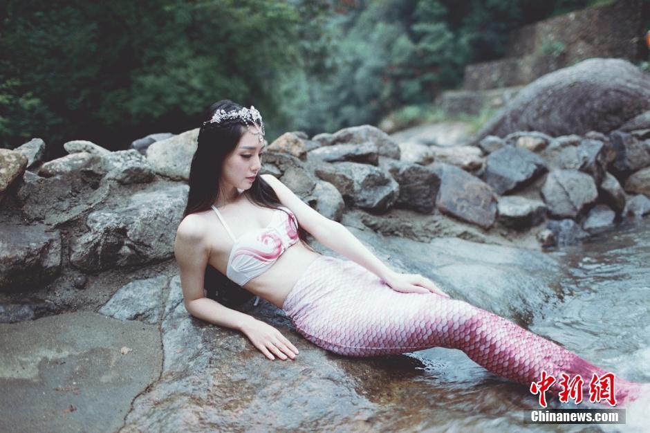 近日,在江西鹰潭龙虎山圣井山景区,厦门大学校花程熙媛和“网红”小孽上演了真人版“美人鱼Twins”。两位青春靓丽的姑娘扮成人鱼,一个身穿着红裙优雅文静,一个扮相“春丽”俏皮可爱,引来游人围观。 吴师潮 余楷 摄
