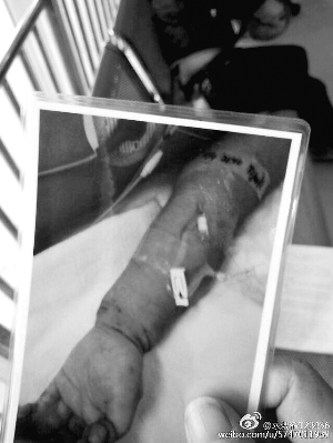 记者从张少峰提供的照片中看到,孩子胳膊、肩部都有明显淤青、血痂,大腿内侧有疑似烟头烫伤的印记,脚踝和小腿有带血的划痕。最关键的是,孩子头部出现损伤,自去年9月18日昏迷后,再没有醒来。