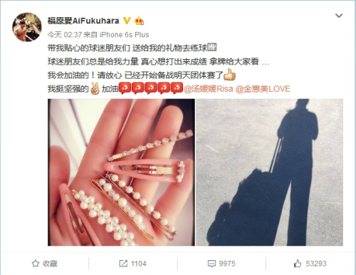 来自日本的乒乓球运动员在本届奥运的关注也非常高,在输给朝鲜选手后,小爱收到了球迷们送上的礼物——发卡。爱哭鬼福原爱晒出了少女心慢慢的礼物,并表示“带我贴心的球迷朋友们送给我的礼物去练球,球迷朋友们总是给我力量,真心想打出来成绩,拿牌给大家看…我会加油的!请放心,已经开始备战明天团体赛了,我挺坚强的,加油!”