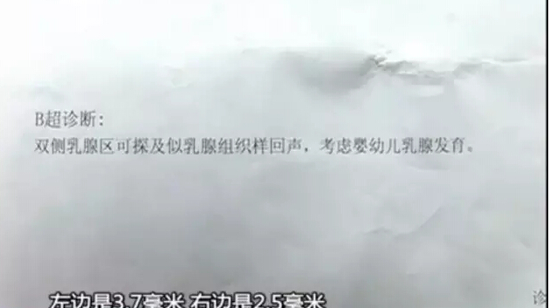 原标题:广东女婴出生三个月胸部涨大
