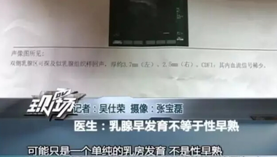 广东电视台公共频道《DV现场》8月15日报道:今日接到韶关浈江区犁市镇的街坊李女士爆料,说她三个多月大的女宝宝,胸部摸上去有硬块,去医院照b超,还被告知乳腺有早发育的迹象。三个月大就出现性早熟吗?究竟是什么问题造成呢?