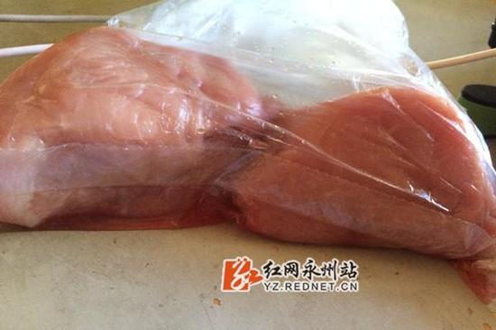 猪肉切开放置保鲜袋后不断有血水渗出