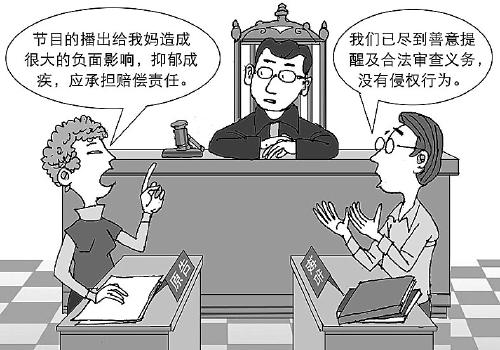 一名年近花甲的老太,应一家文化传播公司邀请上电视讲述家庭纠葛,节目播出后遭到他人非议,承受巨大压力,后以剪辑后的节目内容与录制过程要反映的问题有较大出入,节目的播出给其造成很大的负面影响,致其抑郁成疾等为由,将文化传播公司告上了法庭,索赔200余万元。文化传播公司认为,在节目摄制中已尽到善意提醒及合法审查义务,对受访者没有侵权行为,不应承担赔偿责任。那么,上电视自揭“家丑”、不堪压力抑郁成疾,这个责任该谁负?