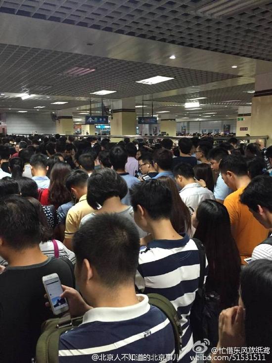 [北京地铁一号线早高峰发生故障 外面还下着雨…]据@北京地铁,8月18日7:30地铁1号线因信号故障,列车间隔加大,影响部分列车晚点。有网友称,东向西运行的列车停在原地不动近半小时,站台广播和列车广播建议乘客乘坐其它交通工具。车厢内温度上升,还有列车停在隧道中。今天北京预告有大到暴雨,市民早高峰出行受影响。