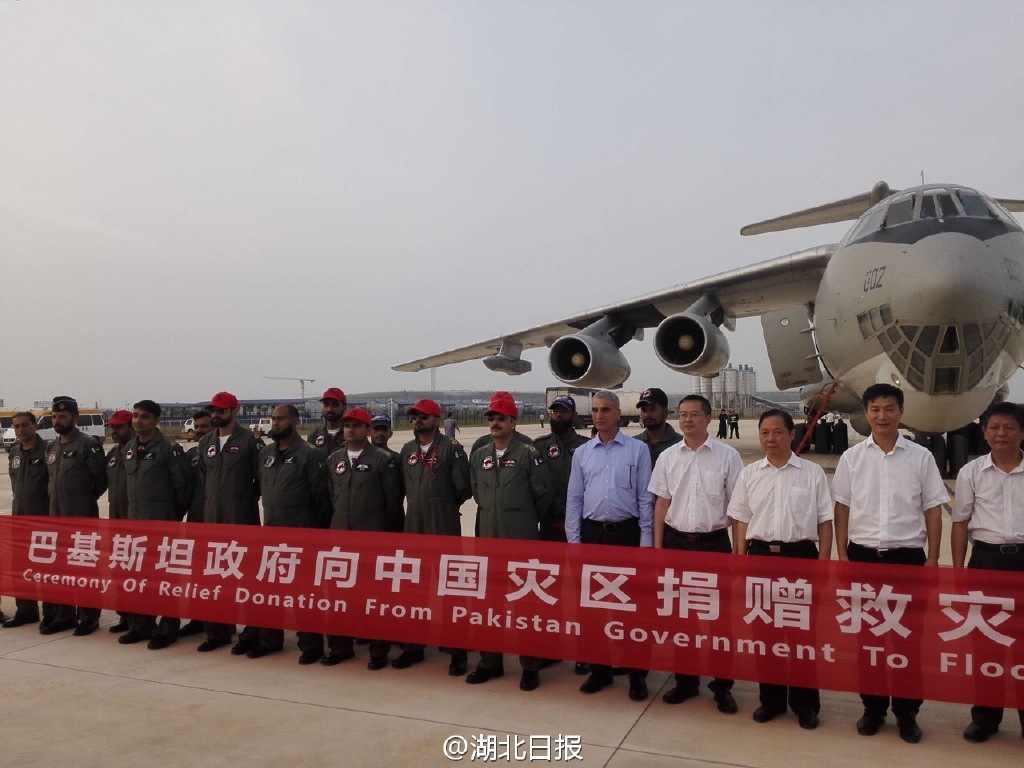 湖北日报:【巴基斯坦政府向湖北灾区捐赠1万吨大米 首批22吨大米运抵天河机场】22日18时,一架巴基斯坦军用运输机满载着巴基斯坦人民的爱心,飞越千山万水,徐徐降落在天河机场,机上满载着巴基斯坦政府捐献给我省灾区的首批22吨大米。