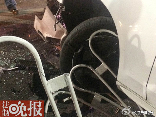 奥迪剐护栏后正撞对面车 车主弃车而逃