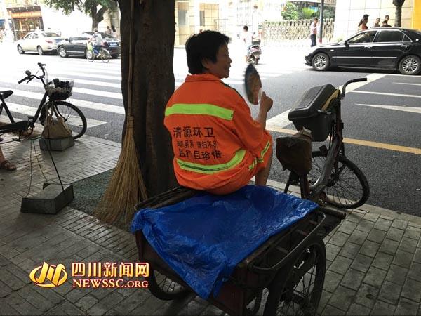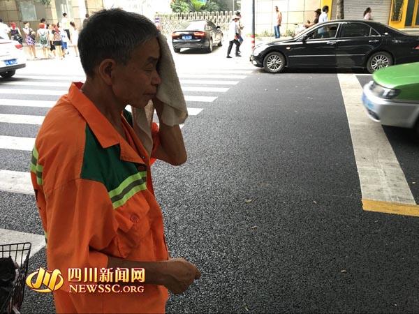 中午时分,环卫工人擦汗的帕子都已经湿透。