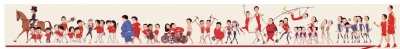 画卷以跨在马背上的骑士华天打头阵,依据比较的时间顺序,共画74个人物,除了参赛运动员外,卷尾三人是本次奥运会上出镜率最高的教练:郎平、刘国梁及孔令辉。选择华天作为卷首,主要是基于两个想法,“第一是受华天的个人事迹影响,其次是想表达一马当先的寓意”。于春华希望我们的健儿在比赛中一马当先。