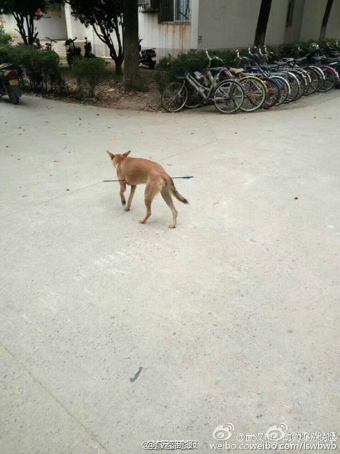 华科大校园内,一条流浪狗腹部被箭射穿,地上留着斑斑血迹。8月24日上午,这一张图片牵动着上千网友的心,多名志愿者赶到华科大韵苑公寓,终于在一宿舍楼内找到了这条受伤的流浪狗。