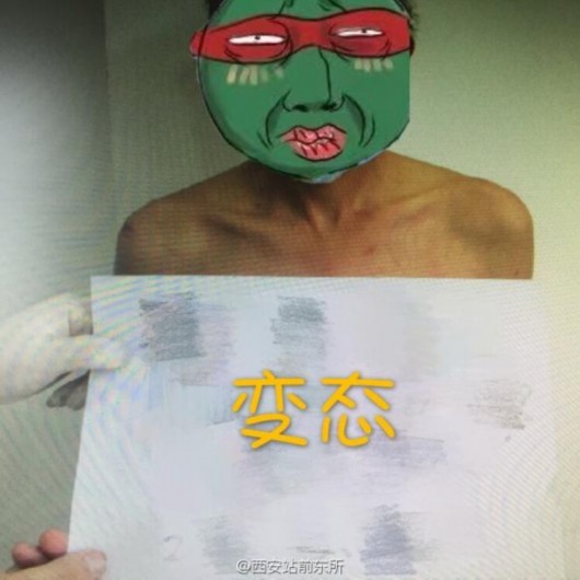 原标题:陕西一半裸男广场猥亵女童被拘,警方配图称其“变态”被赞