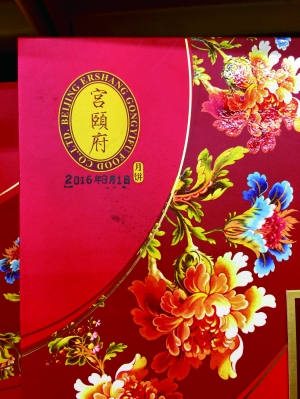 调查中,记者发现,宫颐府月饼礼盒“双生产日期”的问题并非仅出现在乐天玛特超市。叶先生日前在永辉超市鲁谷店购买的宫颐府溢香月饼也出现了上述情况,每盒售价218元。在标明的2016年8月1日的生产日期下方,隐约可见“2015年8月”的印迹。