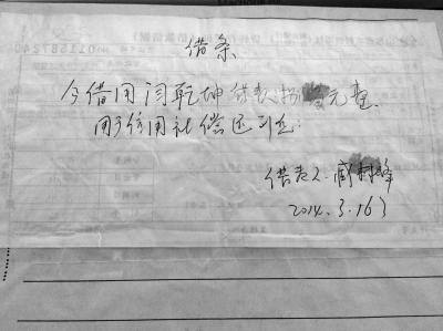 闫乾坤家住南鲁镇闫堂村。2014年初,他准备在济南一处工地与朋友一起包工,但手头资金不足,便想到南鲁镇信用社贷款,“当时准备贷六七万元”。