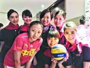 广州日报讯 (记者李妍 通讯员九文摄影报道)近日,中国里约奥运精英代表团到访香港,在里约奥运会上以3:1上演大逆转勇夺金牌的国家女子排球队和主教练郎平,成为万众追捧的“人气王”。8月28日晚,奥运女排军团在下榻酒店迎来了一批特别的追星族——紫色的制服、灿烂的笑容、优雅的仪态、超高的颜值,她们是来自香港航空女子排球队,是一群会打排球的空姐。