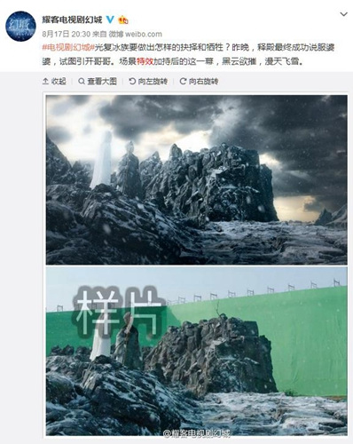 资料图:《幻城》特效制作前后对比图。(《幻城》官方微博截图)