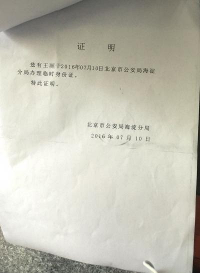 临时身份证有效期超过90天。证明中未填写办理人的身份证号。当事人供图