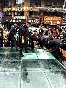 由于被困人员恰好在桥下,最快的营救方法是从玻璃栈道开口处安放云梯,而玻璃栈道很是坚固。刻不容缓,在千钧一发之际,民警尼玛等通过准确测算锁定被困位置后,利用榔头、撬棍等工具开始用力敲碎将军桥玻璃栈道桥面上的钢化玻璃,快反组警力迅速清理围观人群并疏散交通。