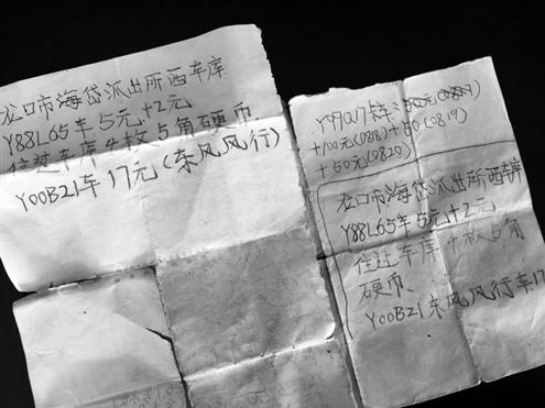 在对隋某进行人身检查时,边防民警发现其口袋内有两张密密麻麻写满字的纸张,便询问隋某纸张情况。据了解,这是从年初到现在的“记账单”,共有20多 笔“借钱”细目,上面详细记录着其“借”钱的单位、车牌号、宿舍号以及金额和香烟等内容,其中每次金额从5毛硬币到百元不等。