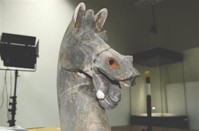 “13匹马中,就它与众不同,修复难度也是最大的。”文物修复师余健介绍,这批文物是今年4月送过来的,这匹陶马是两周前开始修复。“在修复前,我们按照器物的风格,专门制定了修复方案。”