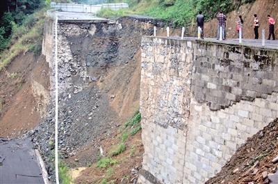 昨日,记者在武务路垮塌处看到,70米长省道被撕出10米宽裂口,下方是百米深渊。“如果没有饶叔,后果不堪设想。”浩口乡党委书记文静称,经当时政府干部粗略清点,饶叔当晚拦下了50辆车。