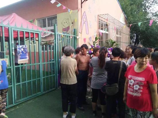 9月8日下午,幼儿园外聚集了大量围观群众