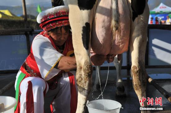 资料图:奶农挤牛奶。中新社发 任东 摄