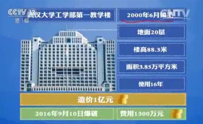 这座教学楼于2000年6月竣工,地面20层,楼高88.3米,面积3.85平方米。使用仅16年的建筑就被拆除了,引发了巨大争议。