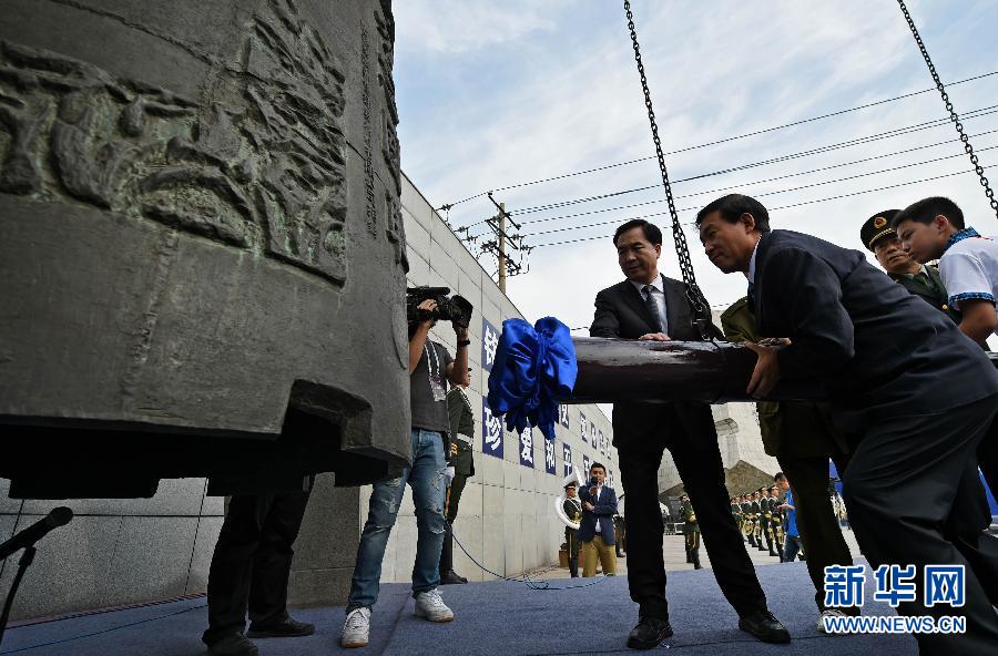9月18日,在沈阳参加仪式的各界代表共同撞响“勿忘国耻”警世钟。新华社记者 姚剑锋 摄