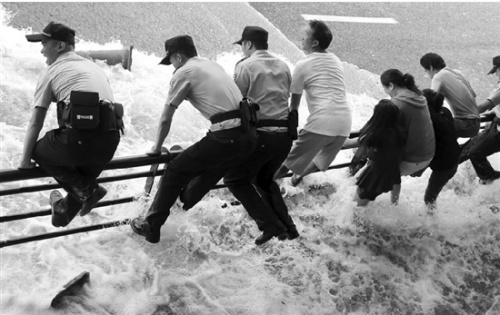 “美女坝的回头潮,把岸边人家停的自行车都冲跑了。”