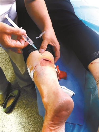 在等候打针的队伍中,北青报记者还找到其他三位被这只狗咬伤的市民。这些市民受伤的部位大多在小腿处,可以清晰地看到被狗牙咬过的凹痕。