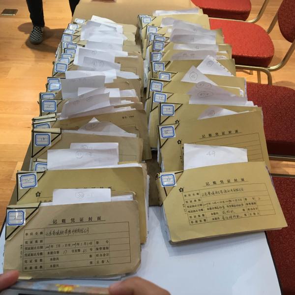 陈光标正在回应公司副总蒋勇伪造公章一事,并展示了陈光标的报案纪录,还展示了对该案的立案通知书。陈光标指责公司总经理张宏德背信弃义,与副总蒋勇在外成立其他公司,私刻公章,套取公司利益。