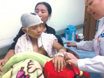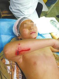 医生说,小杰被送到医院的时候,完全是一个“血人”,他受伤最严重的地方是头部,有2条数厘米长的伤口,伤口处的头皮几乎被完全撕开,缝了30多针,身上其他伤口也缝了20多针。所幸,他已经脱离了生命危险。