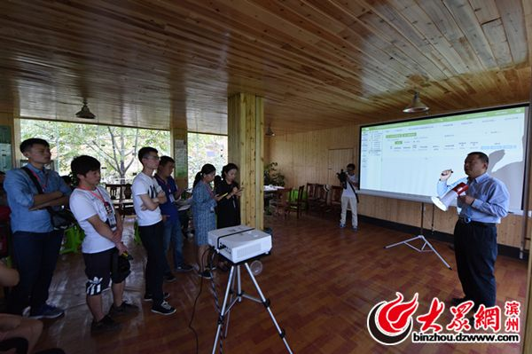 修文县农业投资开发有限公司常务副总经理杨健介绍猕猴桃大数据系统 特约记者 阴豪摄