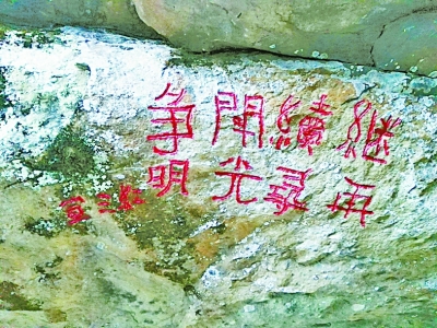 红军写在龙舌岩上的话:继续斗争,再寻光明。光明日报记者陈海波摄/光明图片