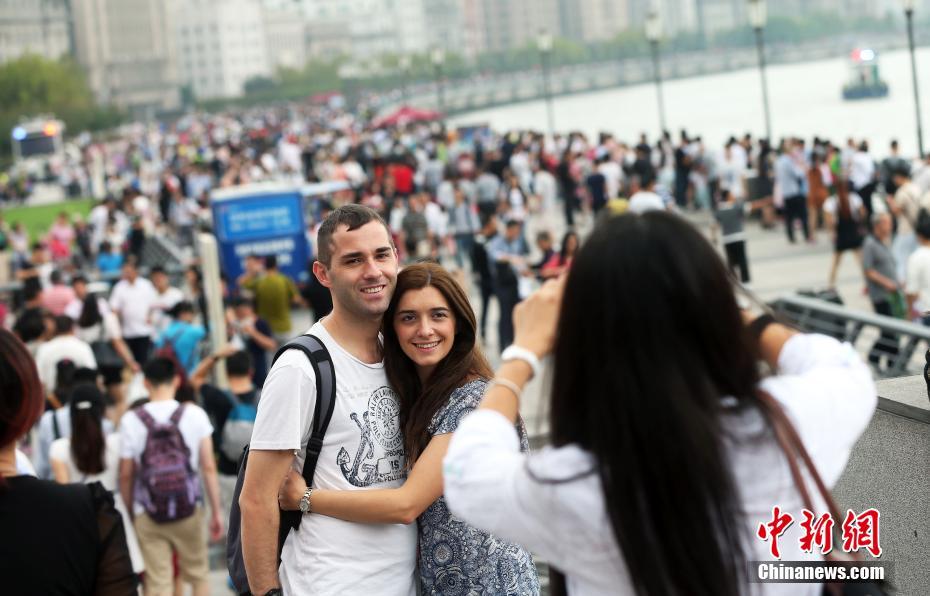 10月3日,上海各景点迎来大客流,作为上海地标的外滩更是游客如潮。 中新社记者 汤彦俊 摄