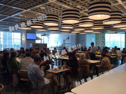 图说:宜家家居上海徐汇商场内,老年顾客坐得满满当当。新民晚报新民网 蔡黄浩 摄
