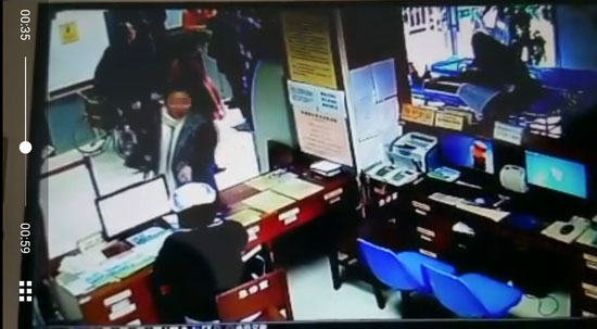 当视频播放到35秒的时候,女子激动地站起来,接着对着护士说话,到36秒时,女子扇了女护士一耳光。女护士被打后站起来将手中的本子等物品砸向了女子。随后,女子进入护士台里的区域,两人扭打起来。最后,医院保安及时出现,将两人分开,视频结束。